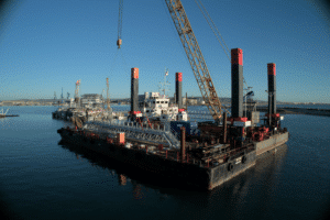 • Marine works & dredging : dredging of about 800,000 m³ and construction of two piled steel jetty platforms with twelve mooring dolphins and berthing equipment, while maintaining port traffic at Sète–Frontignan.